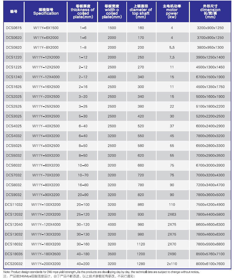 W11Y-液壓對稱式(油缸下置)卷板機引進日本技術生產。油缸安裝在上輥的上方。上輥在兩下輥中央對稱位置作垂直升降運動??梢跃碇苹⌒巍A形、錐形等工件。